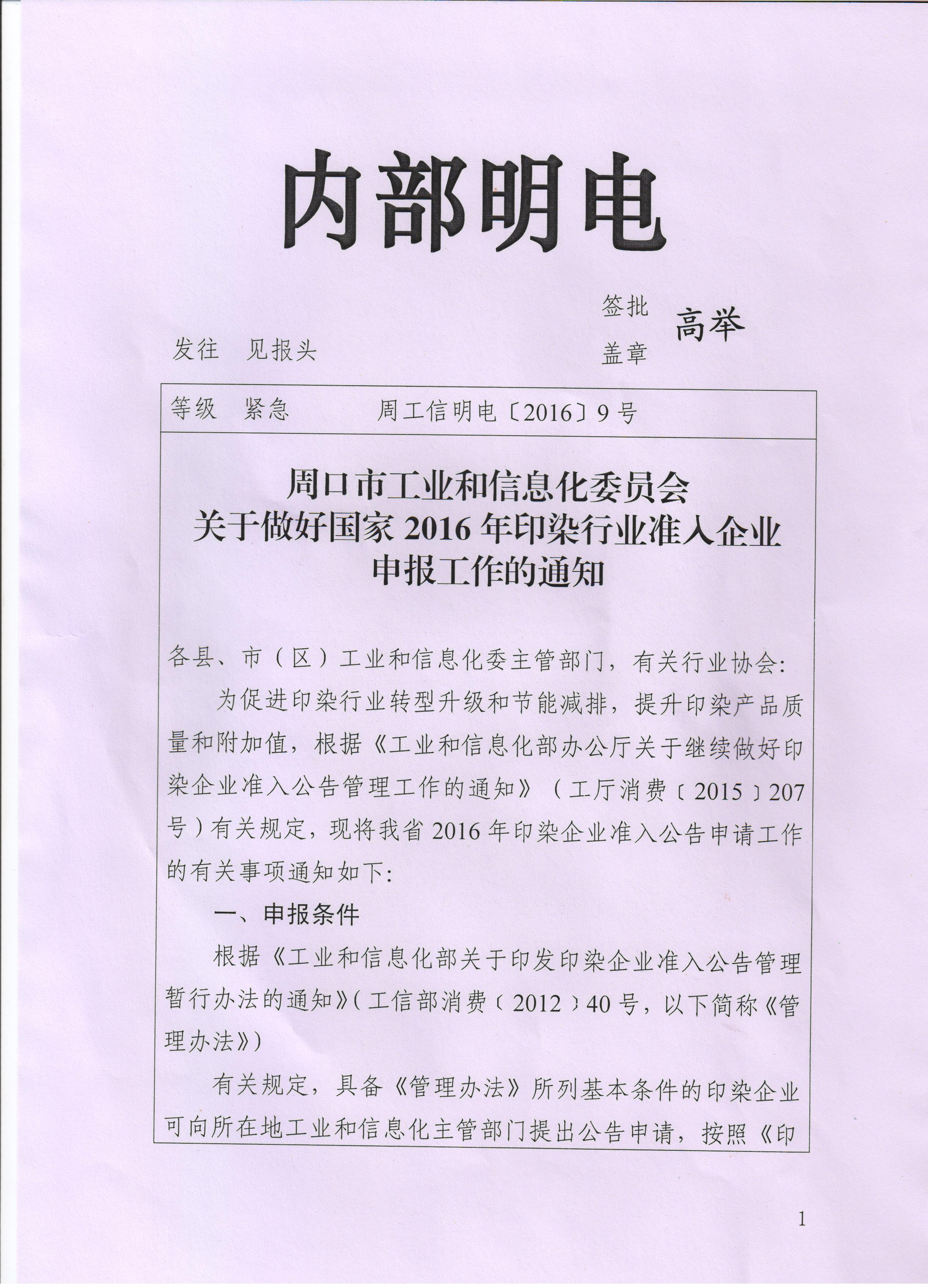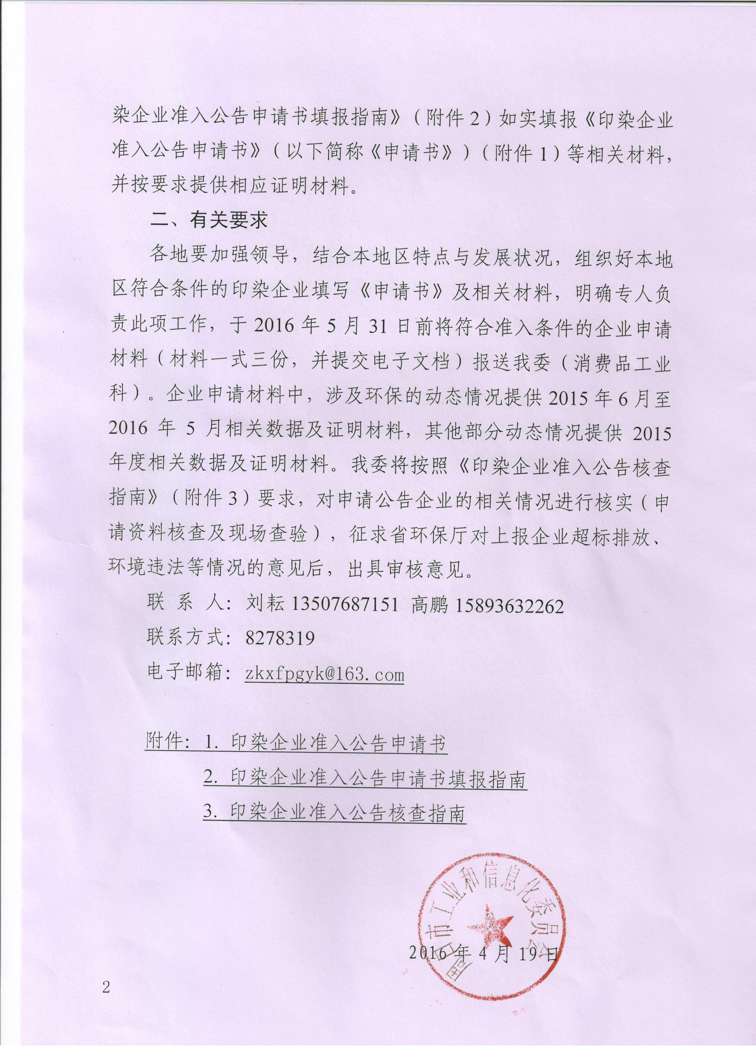 关于做好国家2016年印染行业转入企业申报工作的通知