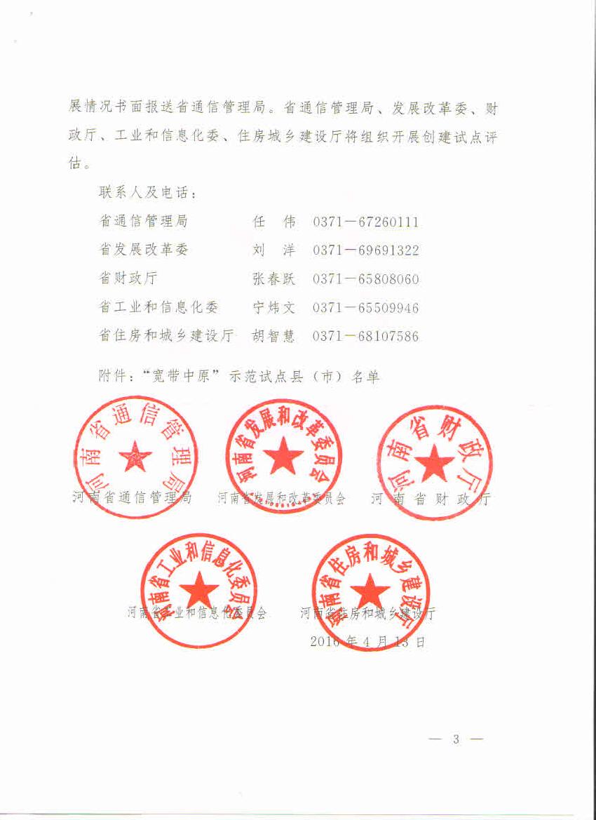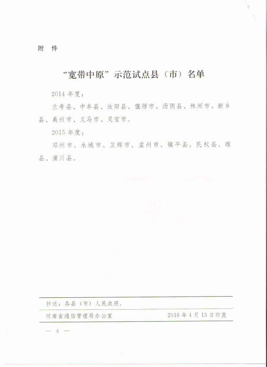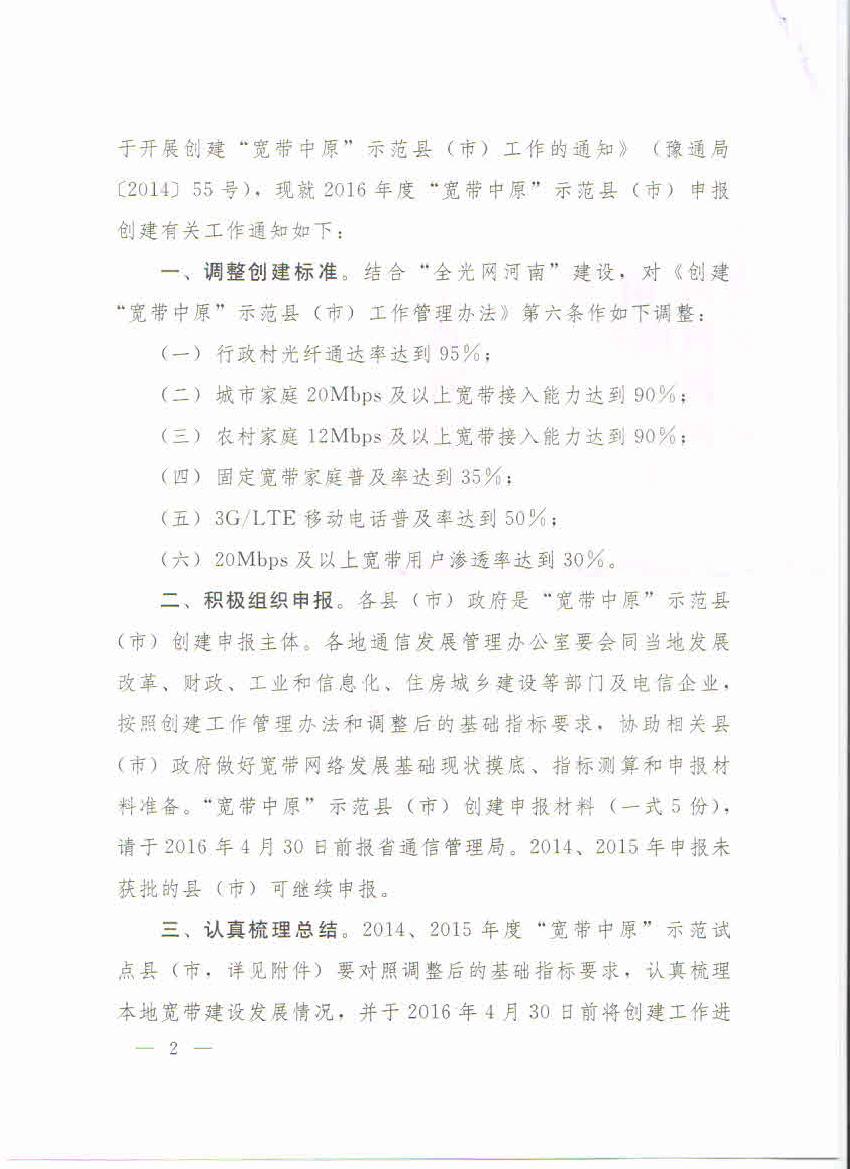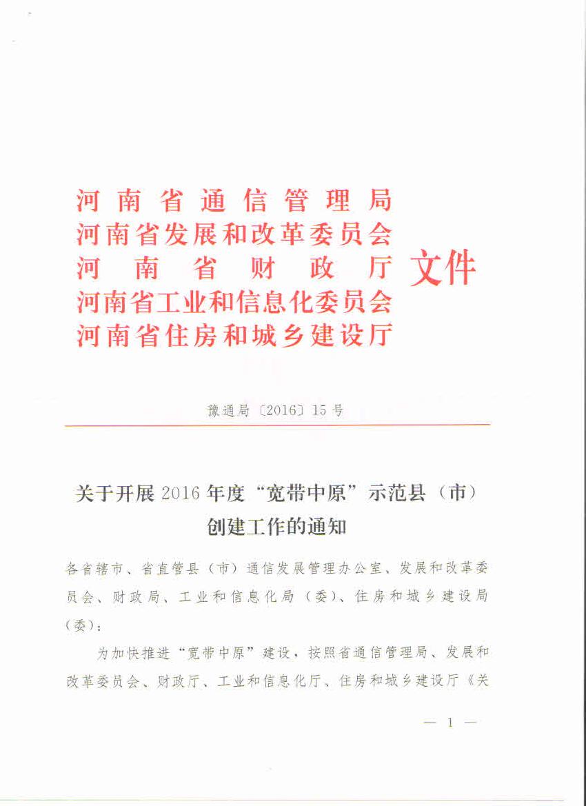 【通知】关于开展2016年度“宽带中原”示范县(市)创建工作的通知